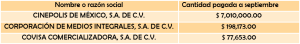 Resulta de gran relevancia poner atención en los montos de las multas que se impusieron a personas físicas y morales, de entre las que destacan las siguientes que se forman parte de las que se han pagado al 6 de septiembre: