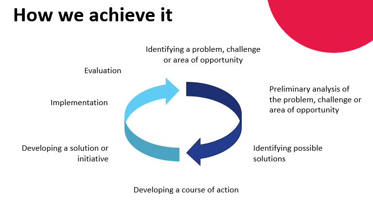 With innovation as the central axis, the organization adopts a transversal approach to generate impacts in the following 9 areas: (1) Science, technology, creativity, and innovation; (2) Intellectual property; (3) Gender; (4) Entrepreneurship and business; (5) Transparency; (6) Education; (7) Democracy and civic involvement; (8) Public policy and the rule of law; and (9) Economy and development.